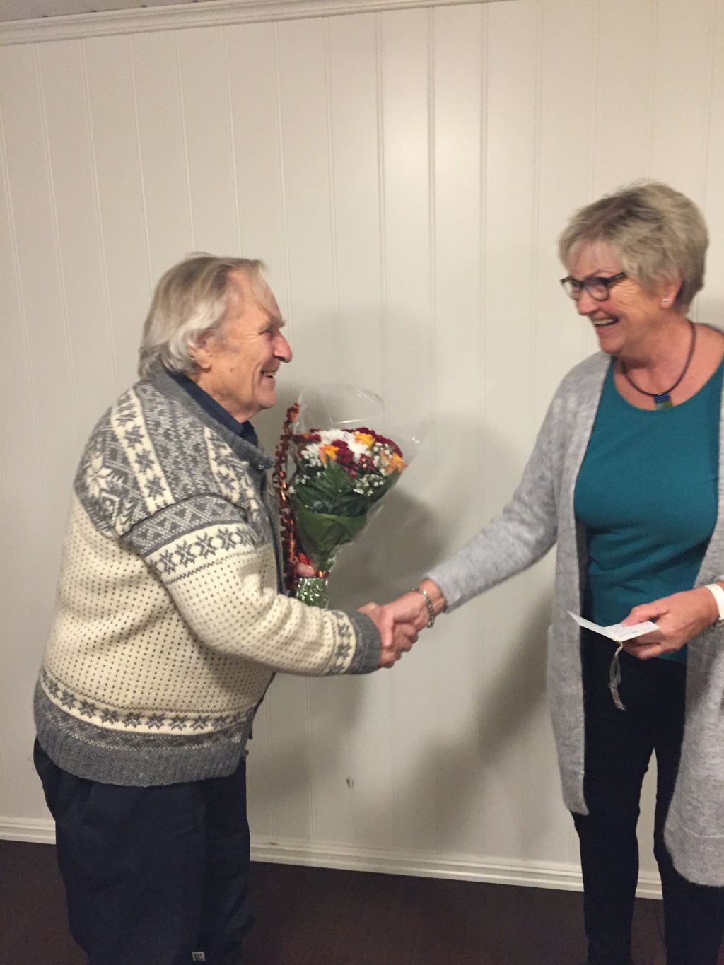 Her får vårt eldste medlem i LC Sørreisa, Roald Selseth overrakt blomsterhilsen fra medlemmene. Hele 90 år ble denne unge mannen 2.november!